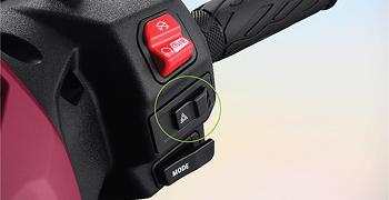 The fixed battery pack can be charged using a standard home outlet. In addition, the e ACCESS also ships with a portable charger* that further expands the rider’s charging options. Riders can therefore recharge at home or on the go with peace of mind.